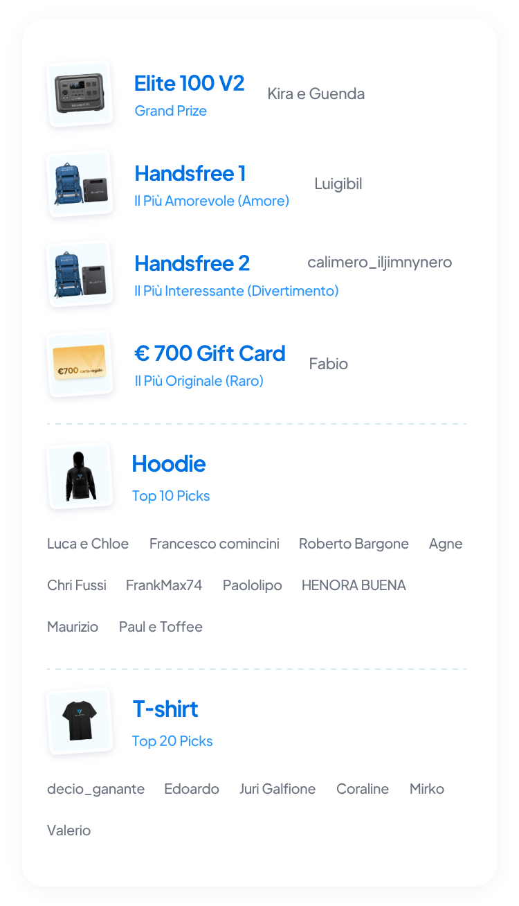 La Sfida Animali Energia Bluetti è giunta al termine.