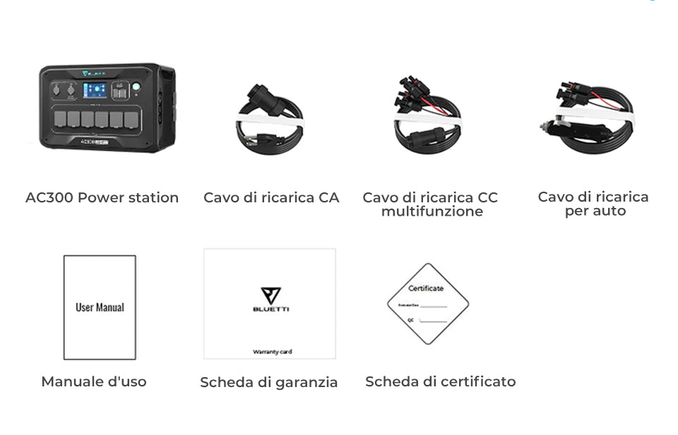 Sì, AC300 può connettersi con APP BLUETTI tramite Wi-Fi o Bluetooth, puoi cambiare modalità di lavoro o avviare l'aggiornamento firmware di AC300 e B300 sul tuo telefono.