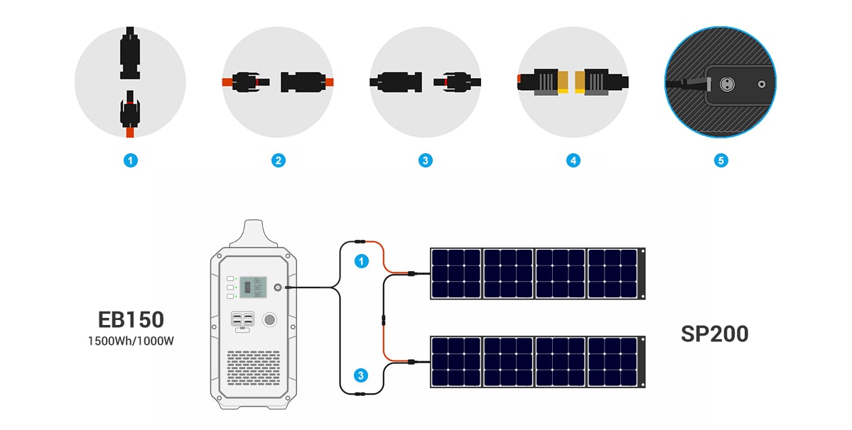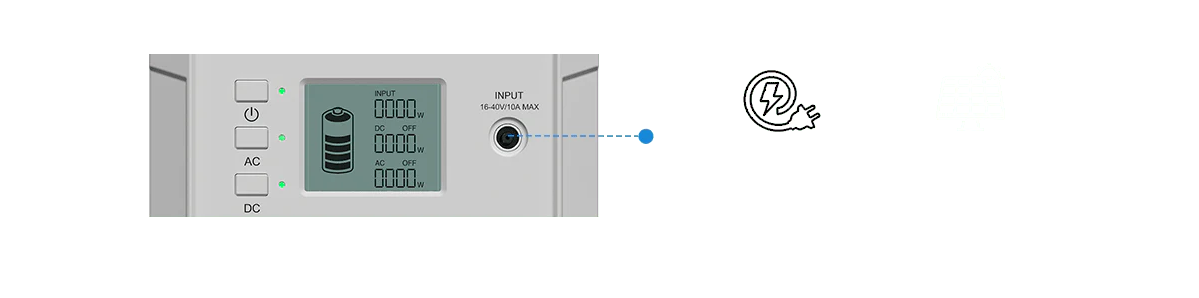 1) Voltaggio a circuito aperto (OCV):16-60V/Max.10A,Max500W (DC7907 a MC4 cavo di ricarica è incluso).