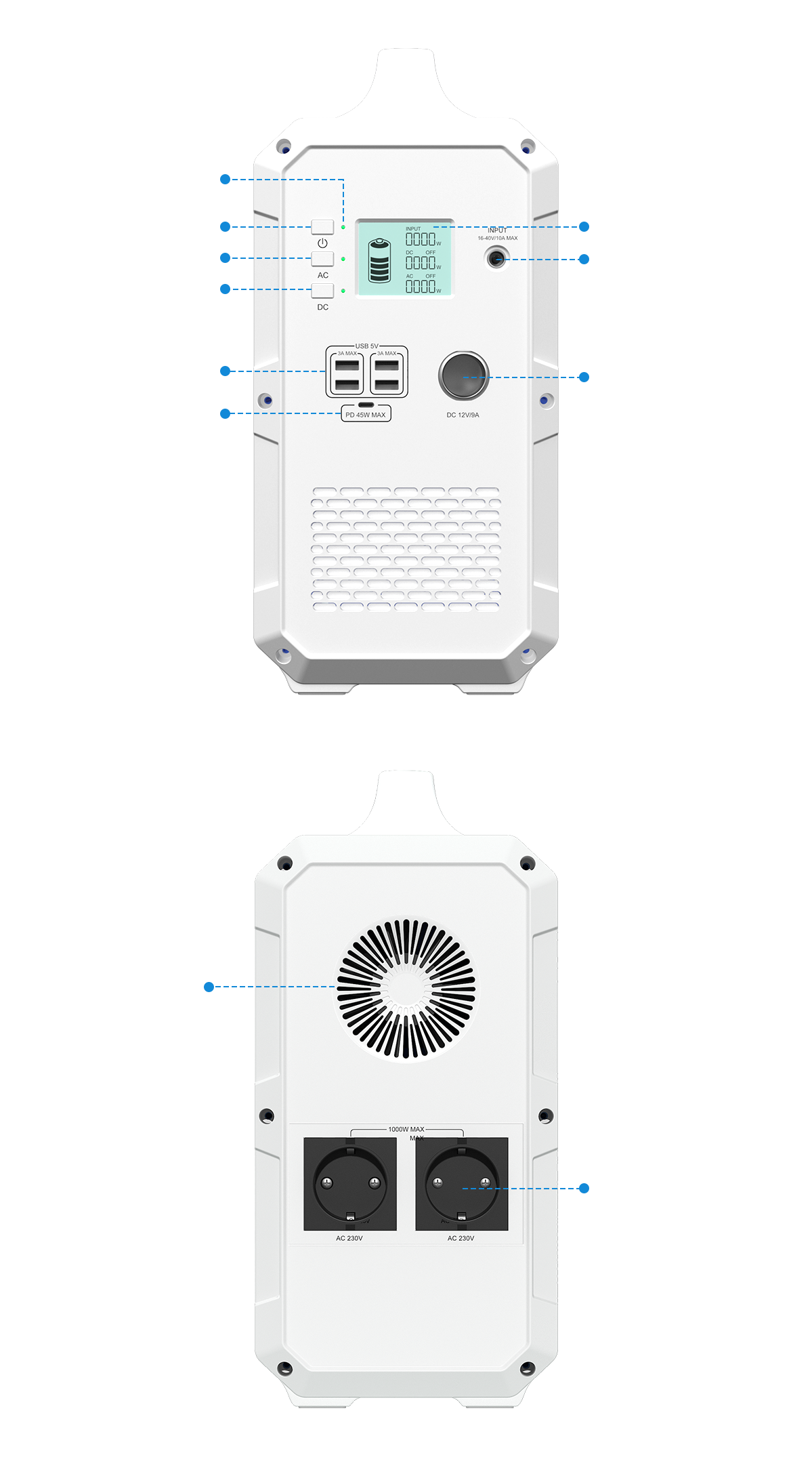 ◉ MPPT integrato per la ricarica solare ◉ Sistema di raffreddamento intelligente ◉ Batteria al litio ultra-sicura