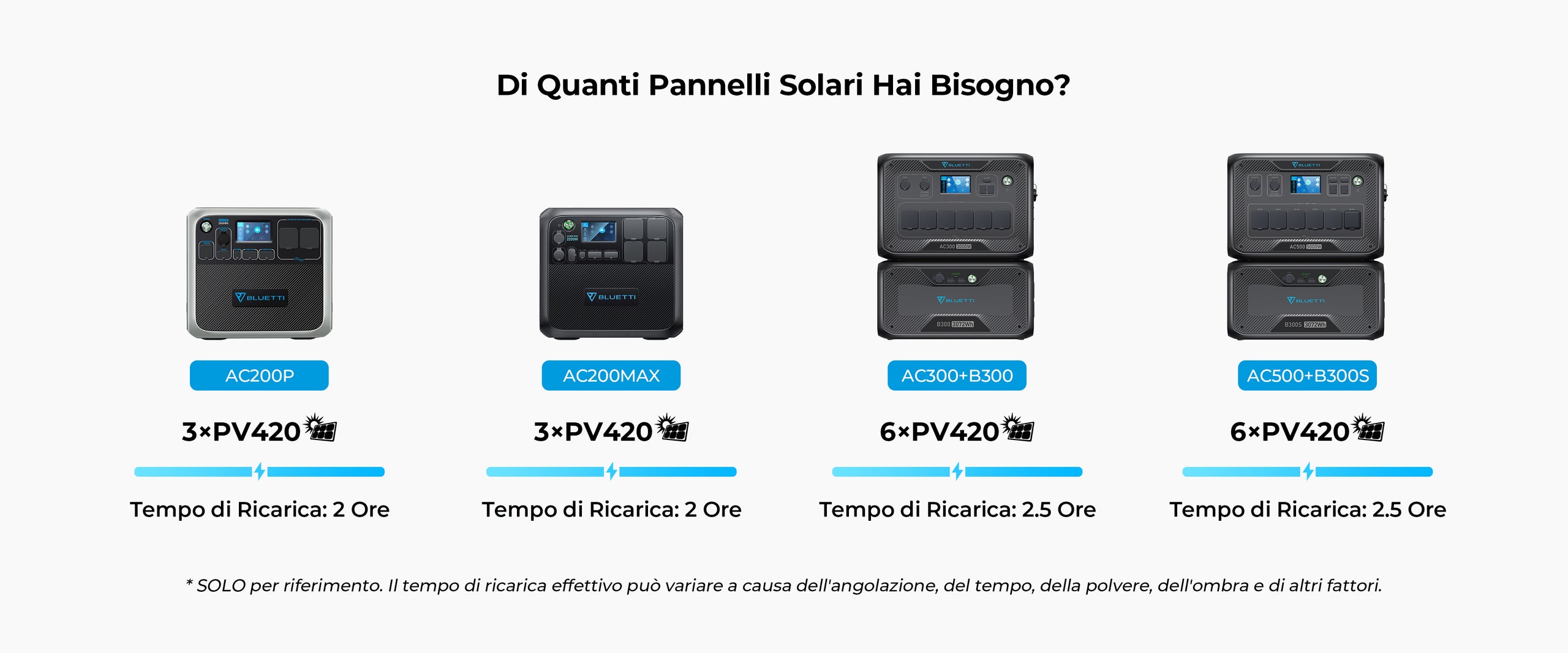 2. Hanno specifiche compatibili coerenti con la tensione di uscita dei pannelli fotovoltaici BLUETTI.
