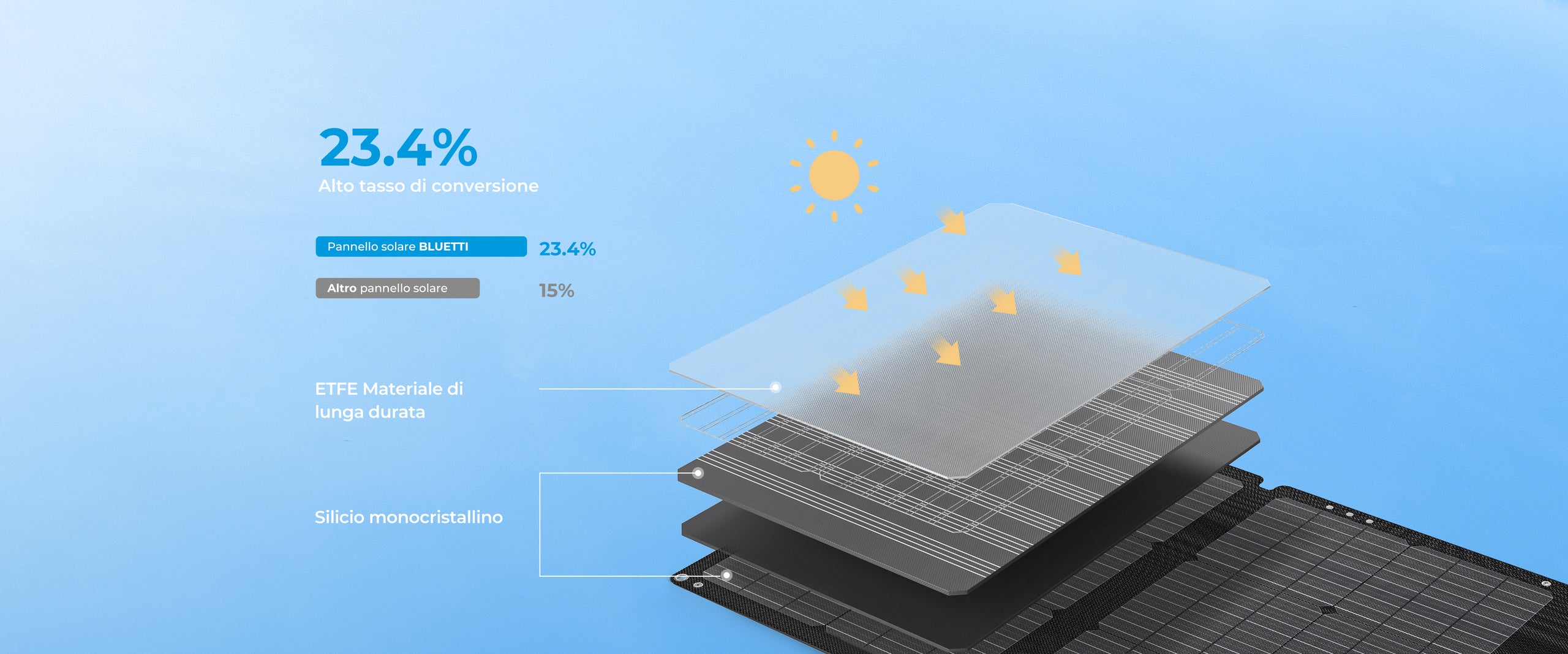 A:- L'effettiva efficienza del pannello solare può essere influenzata da diversi fattori come il tempo, l'intensità del sole, l'ombreggiatura, l'angolo del pannello, la temperatura, la posizione e la manutenzione.