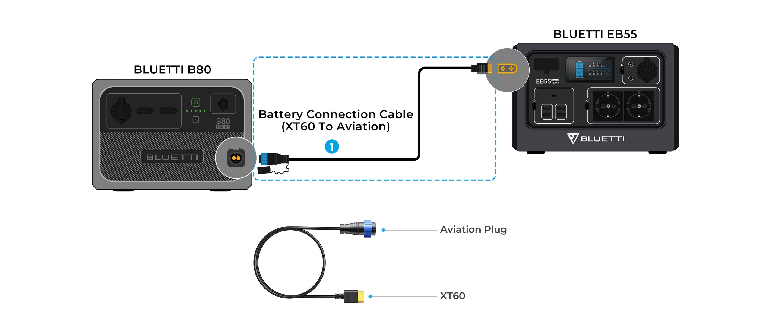 Per aumentare l'autonomia del tuo EB55, AC2A, AC70,AC50B, usa questo cavo per collegarlo alla batteria di espansione B80. Aggiunge una capacità extra di 804 Wh mentre il B80 è in modalità Power Bank, offrendoti una potenza estesa per il tuo dispositivo.