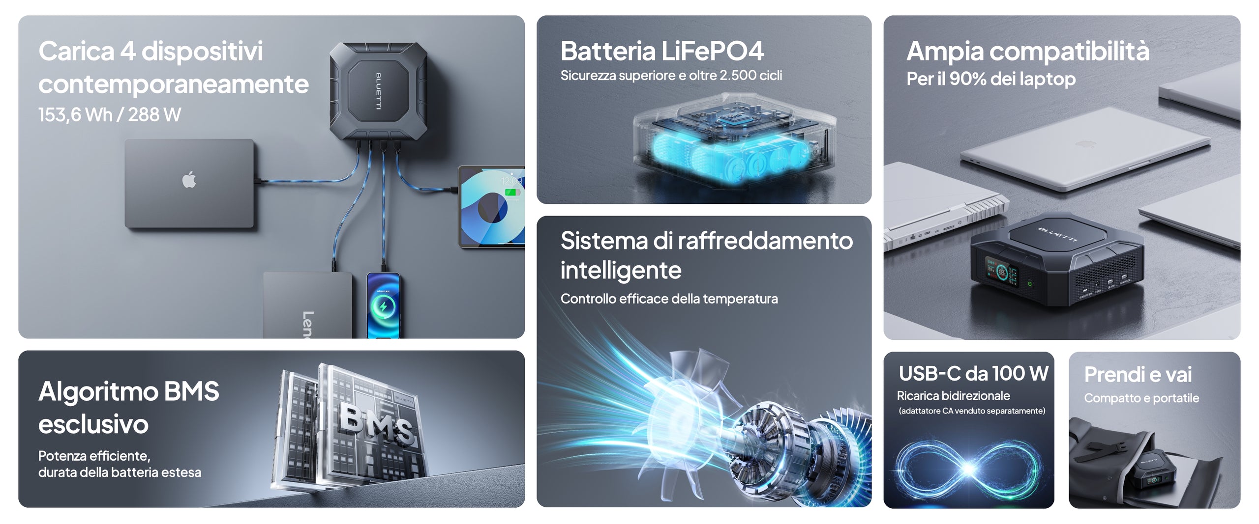Godetevi uno stile di vita intelligente e ricco di energia: i vostri dispositivi rimarranno sempre completamente carichi, sia durante le avventure all'aperto che in situazioni di emergenza.