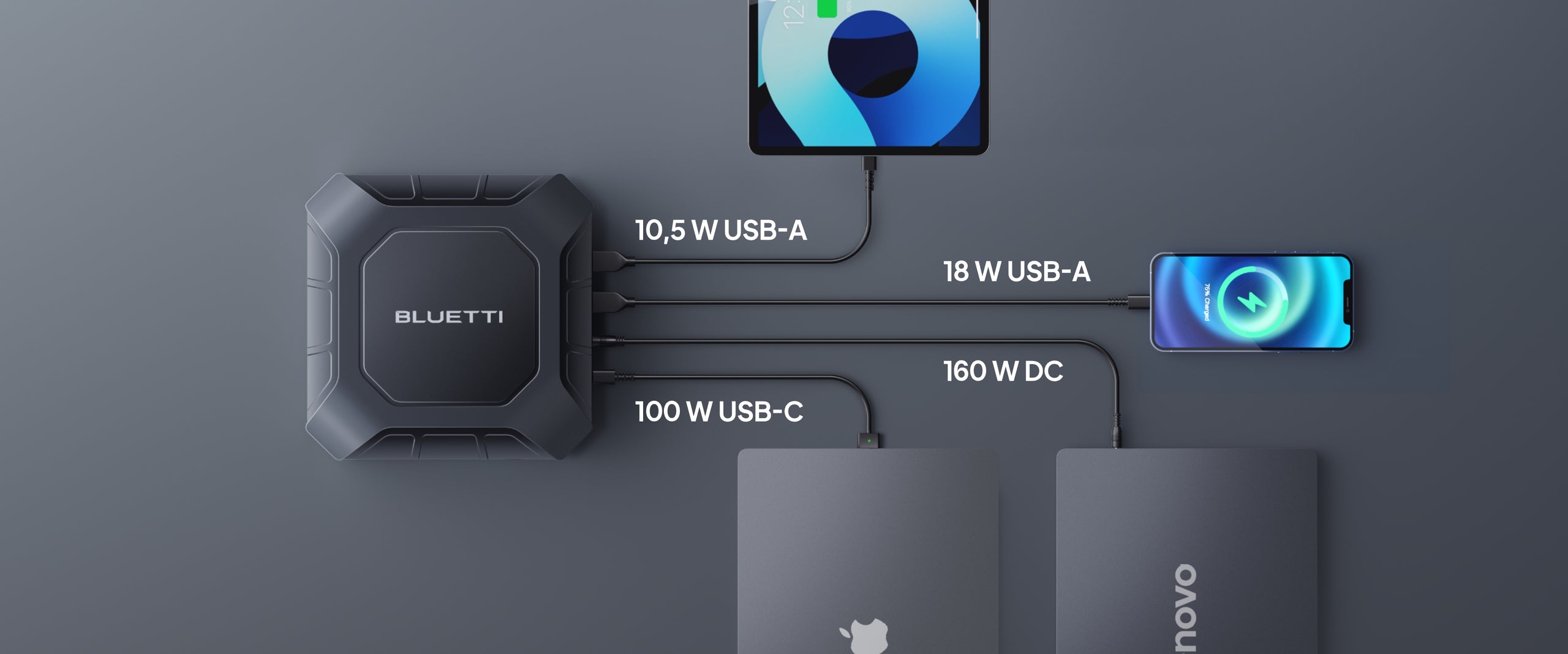• Ricarica bidirezionale: la porta USB-C da 100 W consente la carica e la scarica simultanee, mantenendo i tuoi dispositivi alimentati senza interruzioni.